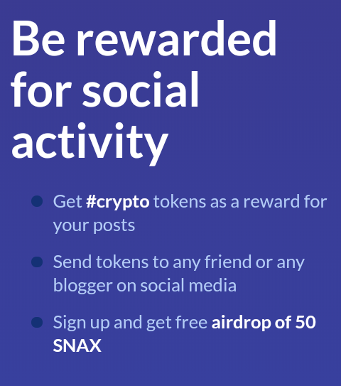 Snax is a blockchain platform. It was created for people to receive rewards for their social activity (tweets, Instagram posts, and so on) and to make instant free micropayments without leaving their favorite social platform. Developers can use Snax blockchain to create decentralized social applications.