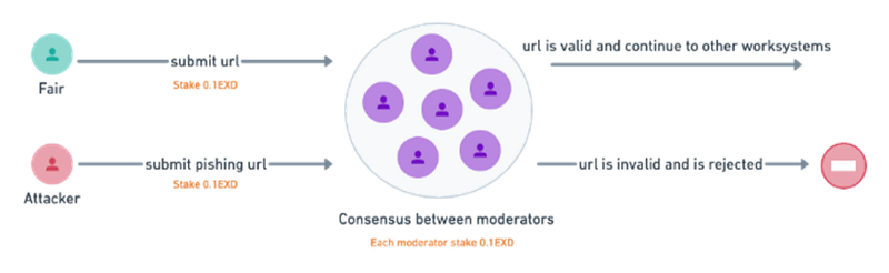 If this URL is, for example, a phishing URL or a pornographic video, then the bet is lost. EXD will not be received back, in addition, the user will lose reputation.