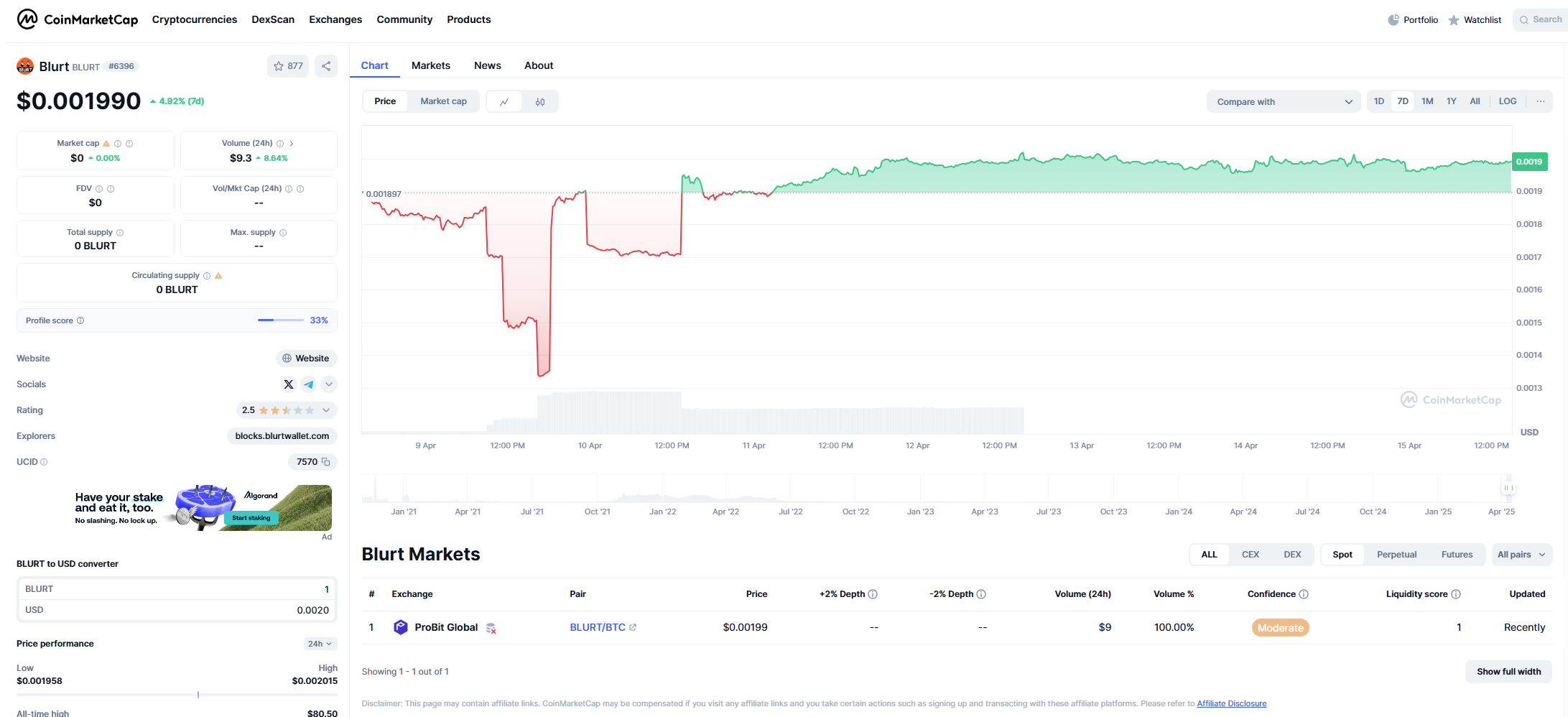 Then I realised that - where should I sell BLURT? It seems there is currently only 1 exchange that supports BLURT.
