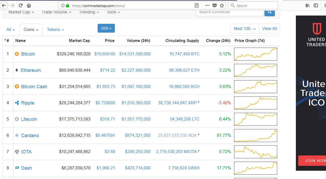 Top cryptocurriencies latest valuekishore1988 (51)in #crypto • 8 years ago Image Courtesy:https://coinmarketcap.com/coins/ #market