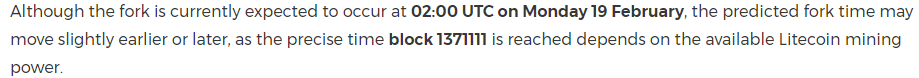 Lite Coin Cash, LTC to fork 2/19 or sooner