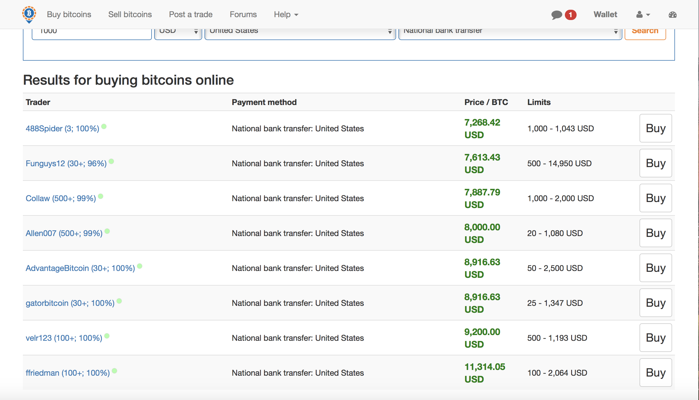 the best offer in this case is one offer for 7268 the cheapest to buy bitcoin the user is 488 spider so we click on the username to see if is a scammer or not