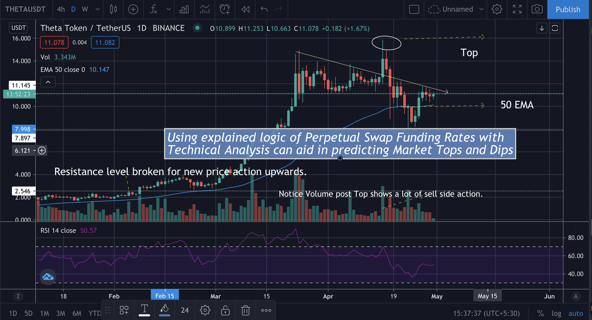 According to eminent Technical Analyst, Alex Kruger, one can spot Market Tops and dips by checking out the perpetual swaps funding rates. When funding rates here are 0.1% and above every 8 hours, it means investors are over excited so the time for a deep correction would be coming soon .