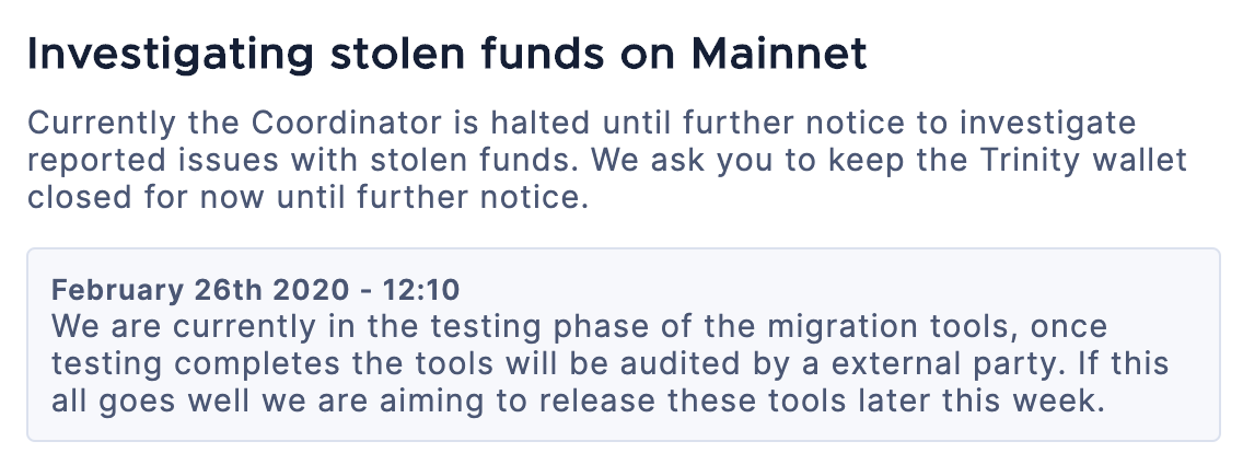 !!!UPDATE!!! - IOTA - Stolen Funds on Mainnetmirkmarvel (60)in #crypto • 6 years ago from https://status.iota.org/ Thanks for watching my post! If you like my posts, please Follow, Upvote, Reply, ReSteem @mirkmarvel #dlt #news #tangle #blockchain #cryptocurrency #iota