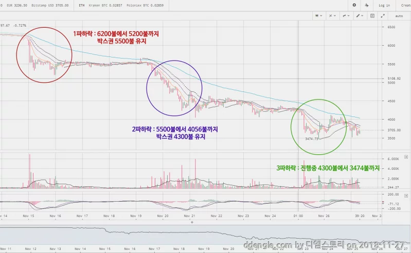 앞선 첫번째 하락 3파가 계속 가동된다면 3000불까지 떨어질 확률이 높다는 얘기입니다.