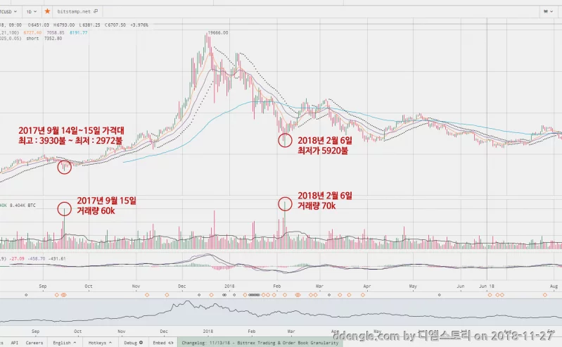 한국에서 붐이 일었던 시기 업비트 9월말 오픈 -> 11월부터 투더문 하던 그림이 그려지네요.
