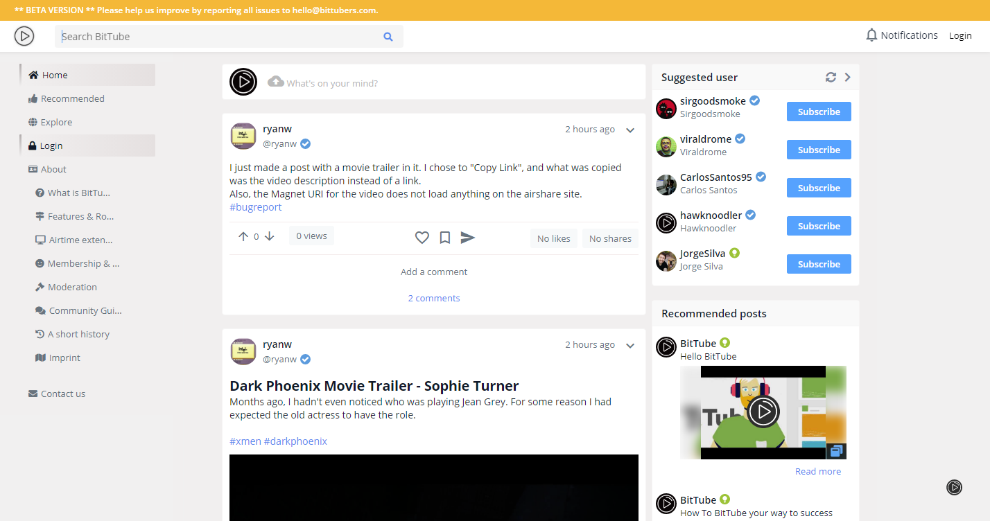 We’ve combined familiar elements from platforms like Twitter, Facebook, Reddit and YouTube. You can live stream and upload videos, images, audio clips, or just make normal posts. Writing long-form articles will become available as well. You can manage subscriptions just like YouTube, the presentation feels a bit like Twitter. You can manage groups and send each other direct messages like Facebook. We’ve introduced “Topics” to follow hashtags a bit like subreddits, and we added up/downvotes and sorting filters to top it off.