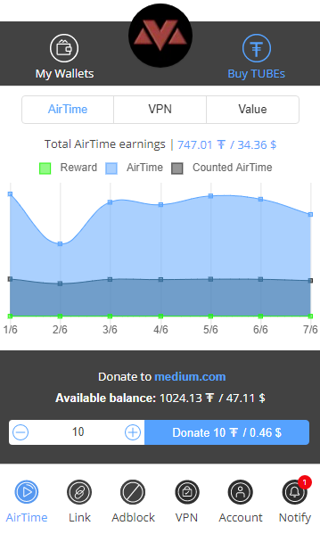 TUBEs are earned by others viewing your content and by you viewing others' content. The amount of TUBEs earned vary depending on the amount of time people spend viewing your content. This is called AirTime. The same applies to when you are viewing others' content. Naturally, you earn more TUBEs from others viewing your content than you viewing the content of others.