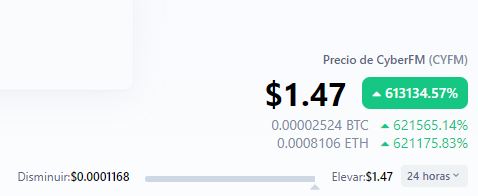 El extraño caso de las criptomonedas que suben demasiadonekofail (51)in #crypto • 5 years ago Desde hace unos días hay varias criptomonedas con poco valor que están aumentando escándalosamente su precio. Por ejemplo, el CyberFM subió en un minuto más de un 600.000% para luego bajar al precio inicial tras 12 horas. #bitcoin #criptomonedas #cyberfm