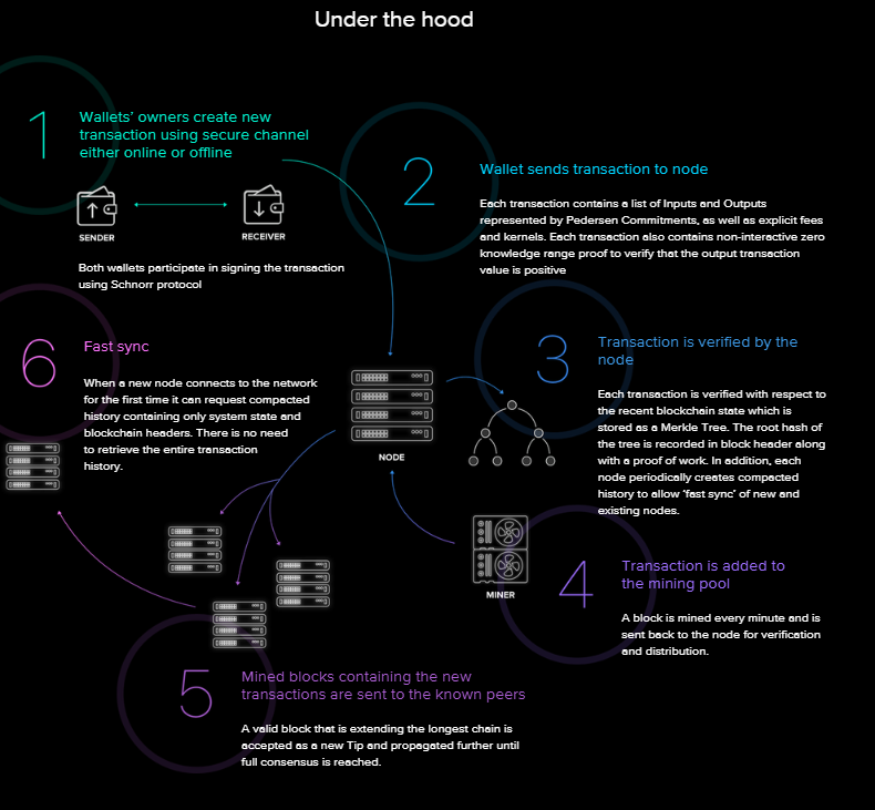 BEAM is built on MimbleWimble, and thus, BEAM has the following characteristics: