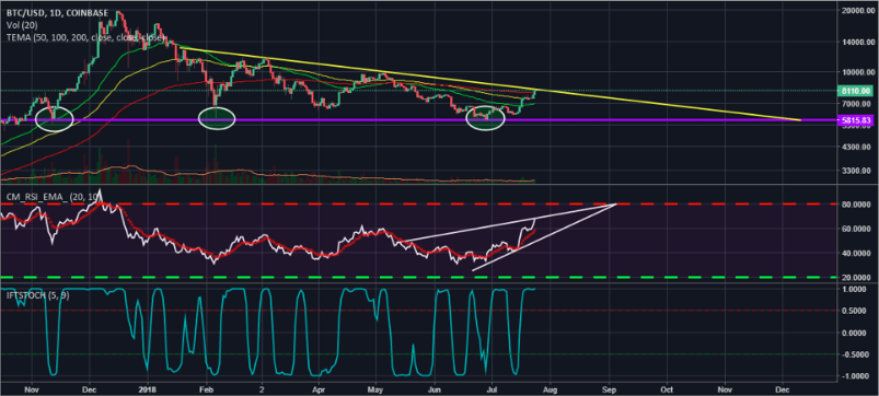 Bitcoin (BTC) appears to have deluded a few Investors into feeling that the Price Is In The Clear and that the downtrend is finished. This perception was filled by bits of gossip about a Bitcoin ETF being around the bend. Be that as it may, as the graphs show, Bitcoin (BTC) is in reality getting ready for its greatest fall in weeks. This has just happened thrice previously. The first run through Bitcoin (BTC) contacted $5,800 was in mid November a year ago. The second time Bitcoin (BTC) contacted $5,800 was in February when the price crashed the distance from $20,000. The last time it has happened was in June as the value found a fleeting base after an expanded redress. This time, such an adjustment is relied upon to finish by late August or early September. This would likewise harmonize with good long haul bullish pointers on the week by week and month to month outlines for BTC/USD.