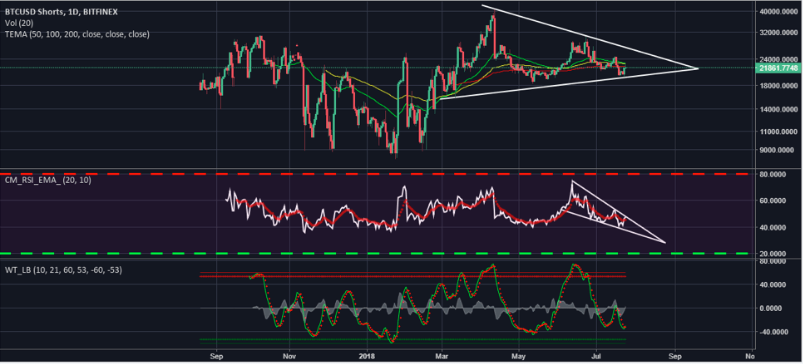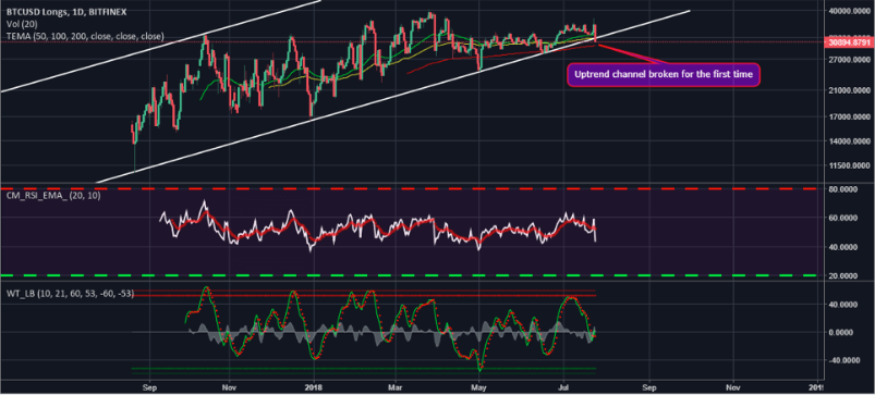 Bitcoin (BTC) could even now make another ATH ( All Time High) for the year, yet so far the price action looks Highly Weak. A snappy look at the BTCUSDLONGS outline above obviously demonstrates that Bitcoin Longs (BTCUSDLONG) has broken underneath the rising channel out of the blue since the start of this revision.his is a solid marker of debilitating bullish notion. RSI and Wave Trend analysis for BTCUSDLONGS demonstrates that the price is probably going to proceed