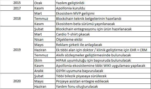 Yol haritalarını incelediğimizde Apollonia projesi için yazılım geliştirmeye 2015 yılında başladıkları görünüyor.
