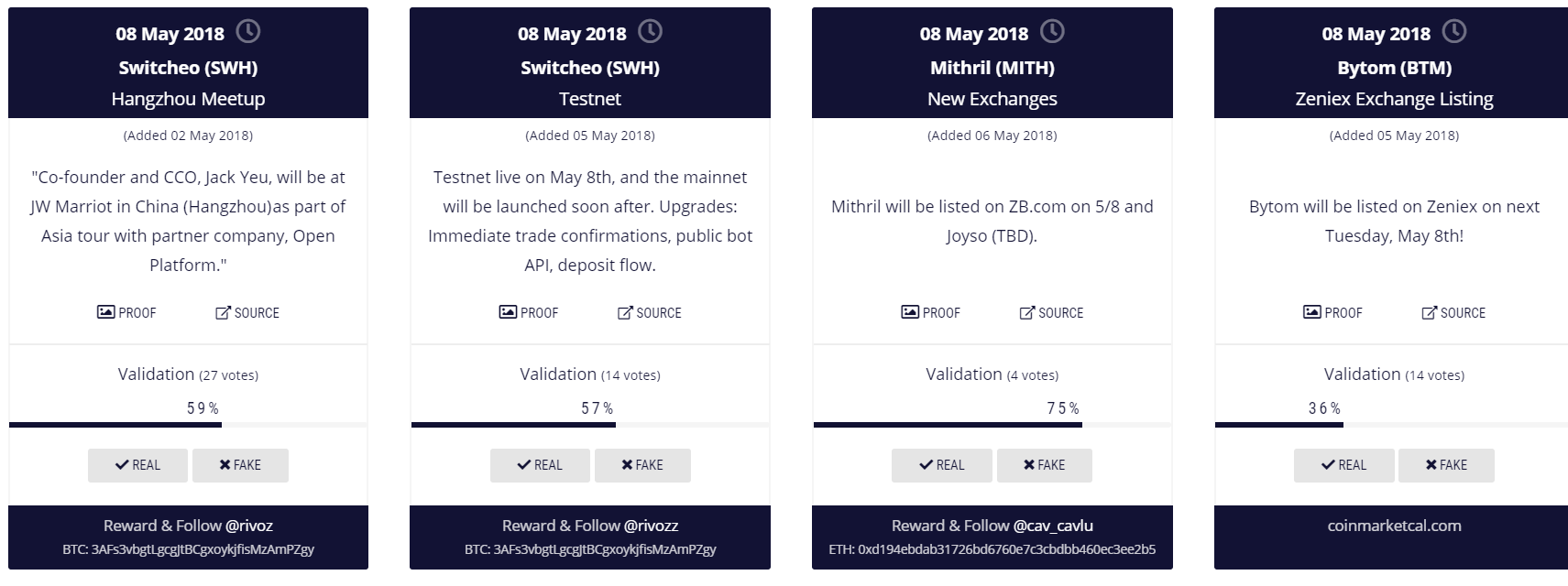 Cryptocurrency Events :- 08 May 2018