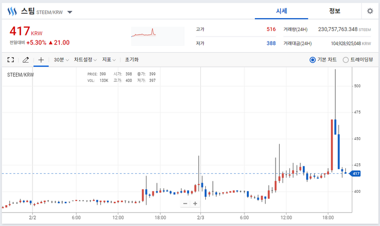 It's not like there's good news, but it's because of the pumping of power that it went up like this. If Steem was a large coin, they wouldn't be able to do it this way. It's because the team is so happy... The field that seemed to rise is sinking again I'll let go of my impatience and wait.