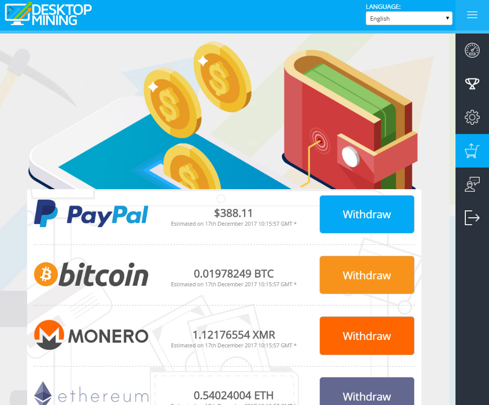Earn money with your windows desktop computer and get paid via Bitcoin, Monero, Ethereum, Iota or Paypal