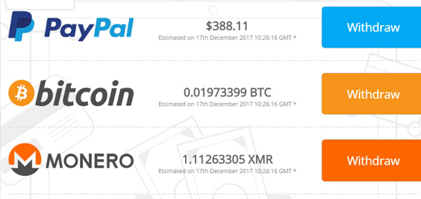 We provide the option for users to get their mining reward through Monero, that means when you want to cash out you can get it sent to your Monero wallet