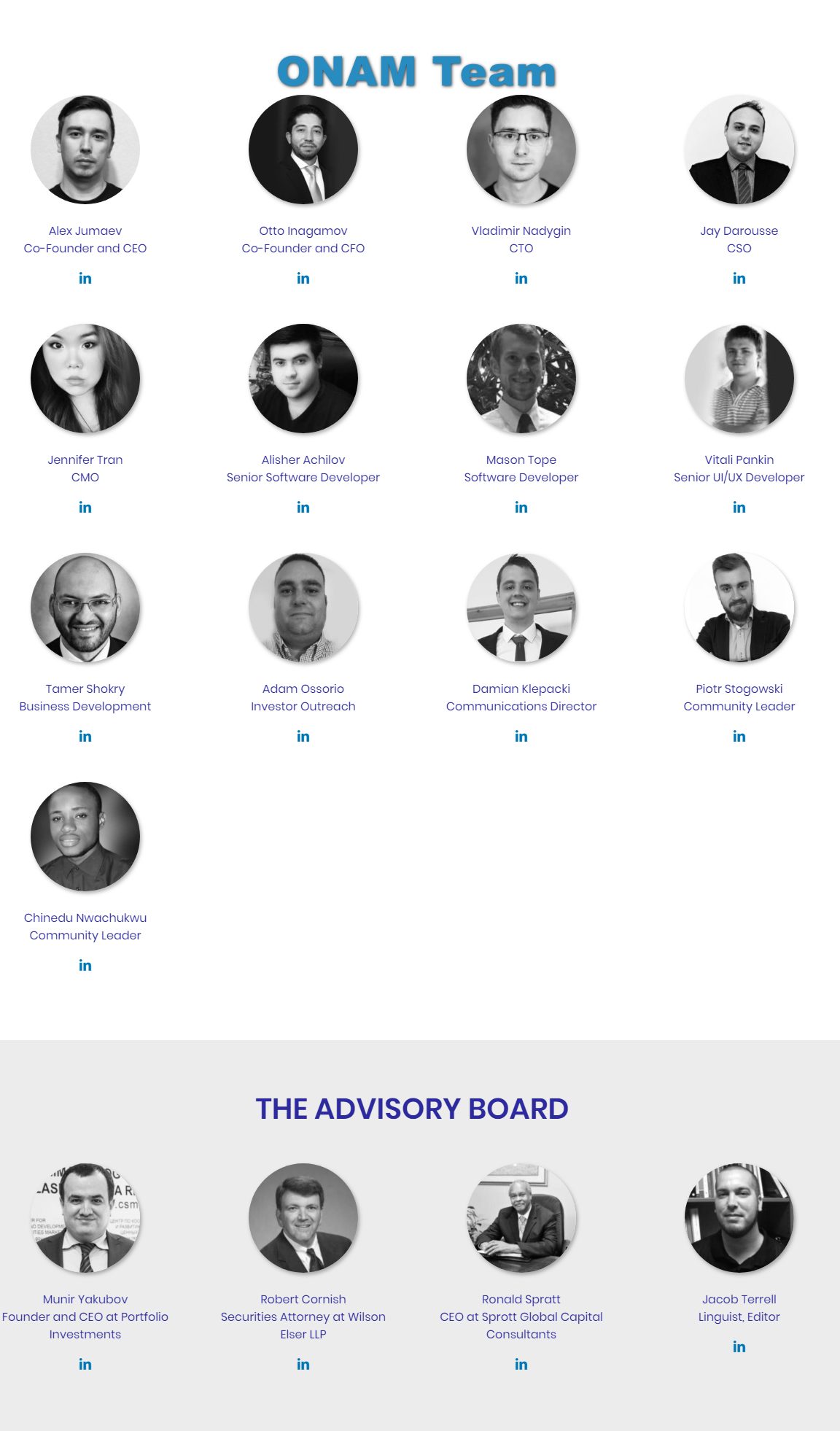 Compliance – The SEC has taken the stance that almost all token issues are security issues. This has resulted in multiple subpoenas to various companies launching ICOs. Licenses are necessary for initiating public offerings and ONAM's top legal representatives are all informed on the latest positions regarding SEC and its view on ICO activities.