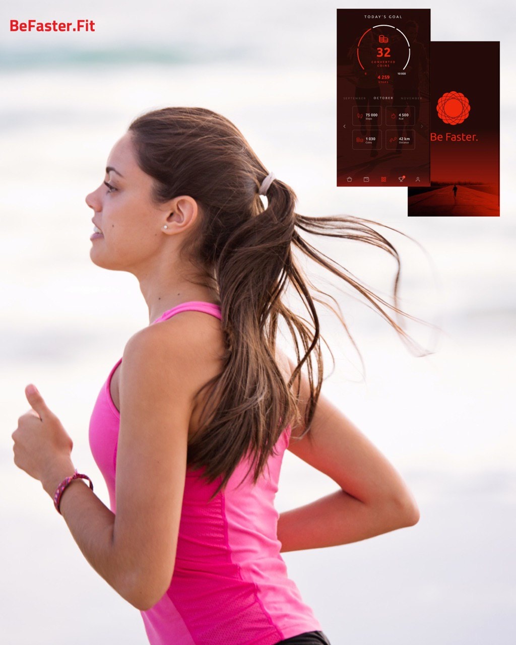 BeUniverse consists of a whole system of motivation in creating a healthy lifestyle. Run and get money, get fitter and healthier, and save your shopping money. For those of you who like to ride bikes and swim, BeFaster will also soon release a prize system for this.