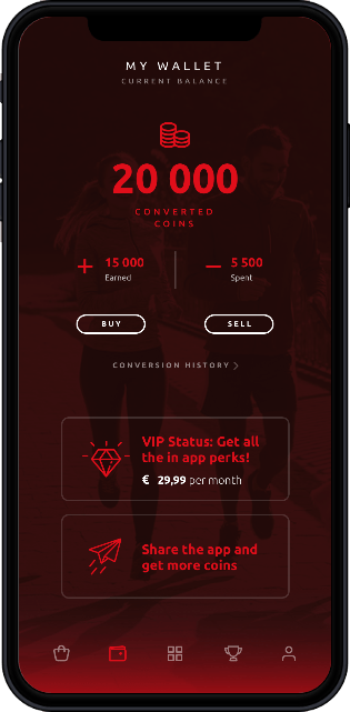 Users can set "Personal Challenges" and compete digitally with each other around the world, participants can set their BFC. The winner will receive a peg from another. Participation in the "Public Challenge" gives users the possibility to receive vouchers and bonuses from partners through their sports movements.