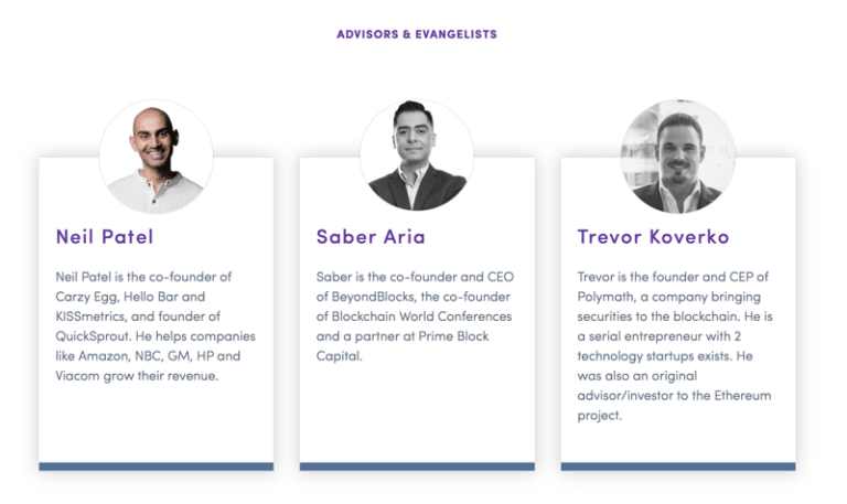 The establishing guides are Neil Patel, organizer of QuickSrpout, Saber Aria, Co-Founder and CEO BeyondBlocks, Trevor Korevko, CEO of Polymath, among other essential counselors.