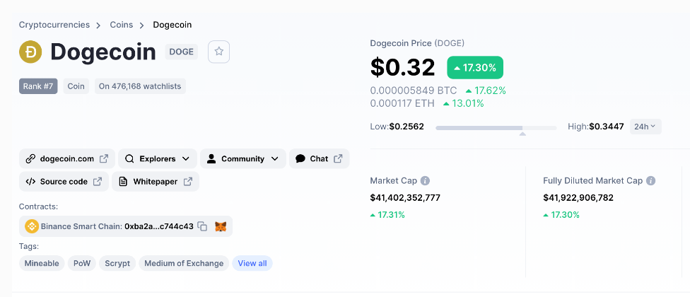 Dogecoin is a member of this exclusive group. As of April 28, it is trading at a price of over 32 cents with a market capitalization of around $ 40 billion.