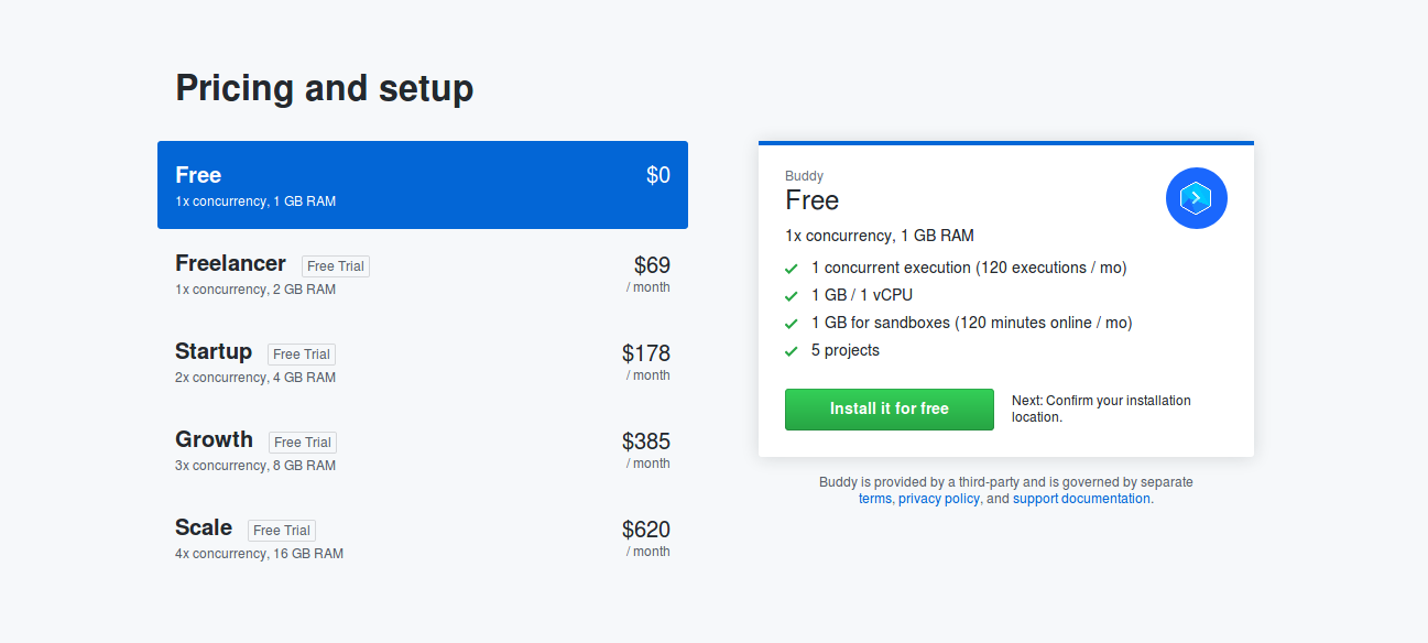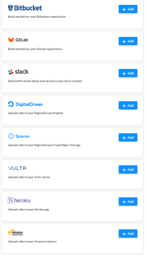 Buddy also have other Apps in Integration with major providers like Google, AWS and Docker