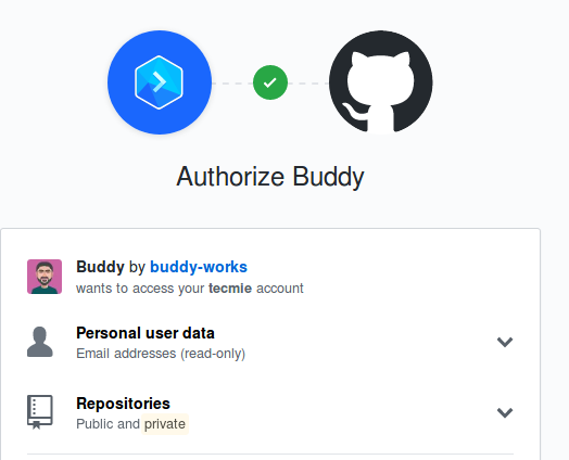 After selecting a Pricing Tier, Grant Access to your Github Account from Buddy which then allows you setup a repository