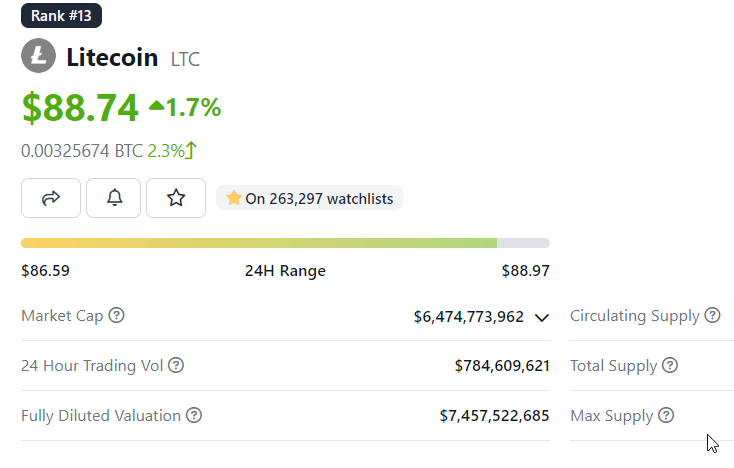 Litecoin reaches $89ulimit (62)in #crypto • 3 years ago Due to the fall of the BTC price, altcoins prices also dropped recently. Altcoins follow the lead of Bitcoin being the market leader. But now Litecoin price increases and reaches $89. That is awesome! It would be great to see how LTC performs. #litecoin #ltc #investment #risk