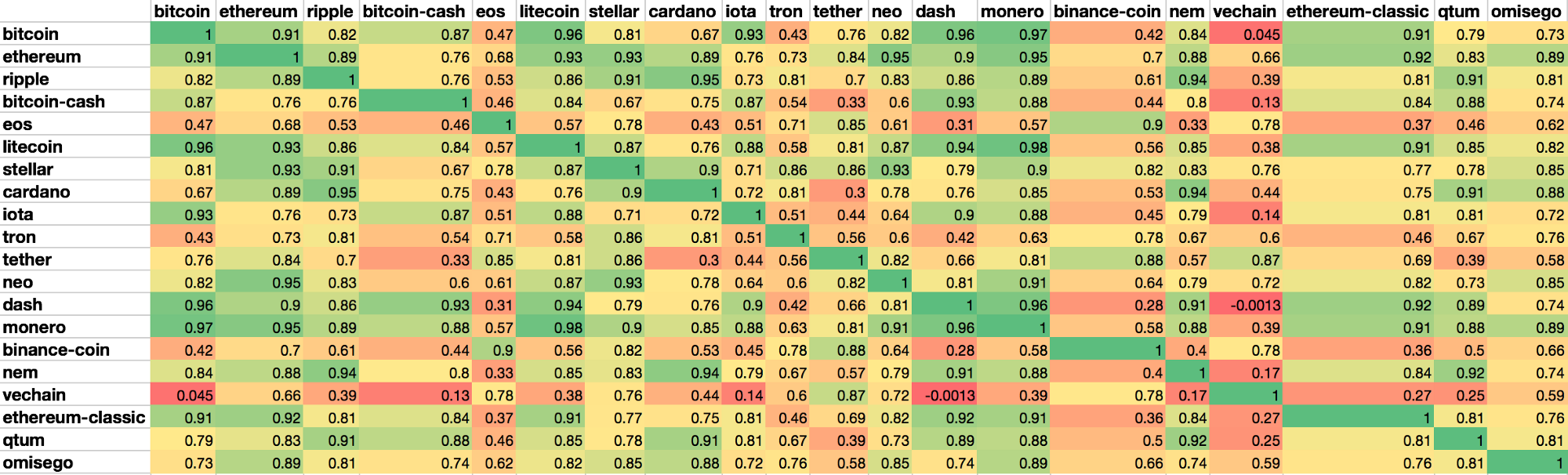50% of the top 200 coins have a correlation of 0.80 or higher.