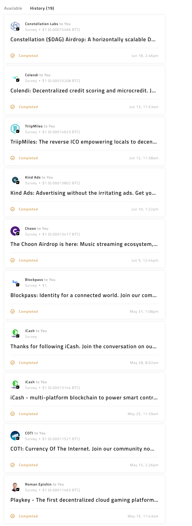 Bro I am getting it please check the screenshot as well they provide $1 or 0.0001BTC for each survey.