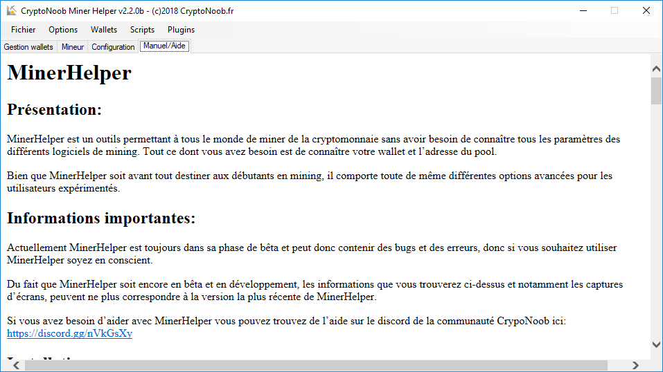 Si vous avez besoin d'aide ou de plus d'infos sur MinerHelper, le mieux est de passé par le discord de la communauté CryptoNoob: https://discord.gg/nVkGsXy