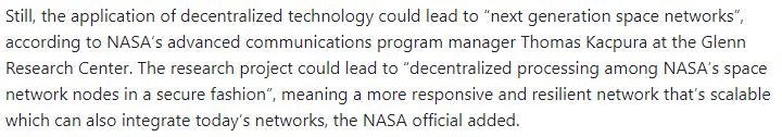 NASA (National Aeronautics and Space Administration) is researching of using Ethereum blockchain technology to improve it's learning machines for deep space exploration in the future.