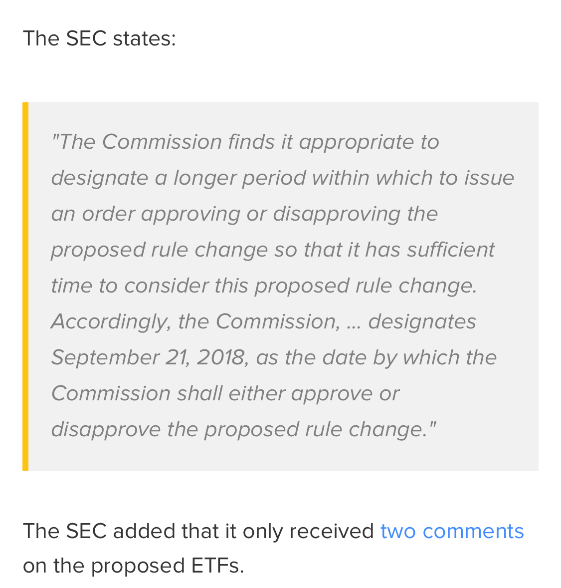 The markets will react based on the headlines I'm thinking. There are several proposed ETFs, and the only one that matters right now IMO is their buddies at the Cboe.
