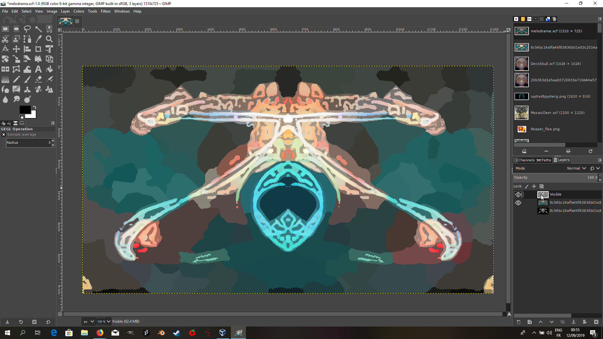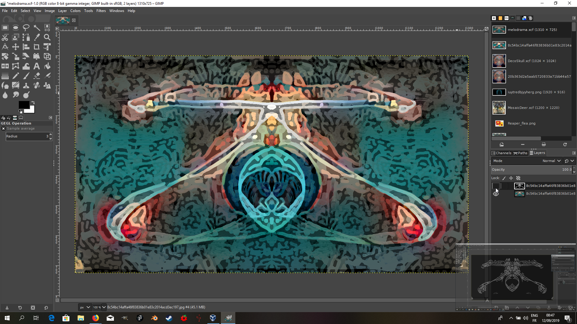 I then took another copy of the original artwork and passed it through Waterpixels, to make a simpler, blurrier, shape for the "background"