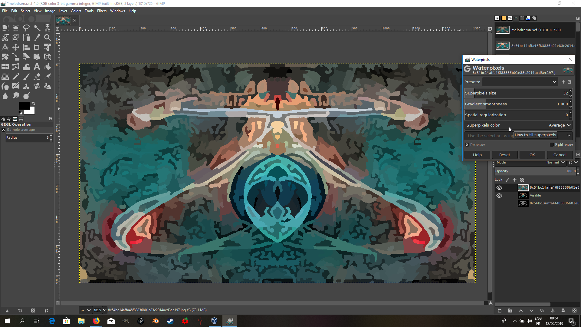 Here the first image I generated is overlayed over the simpler Waterpixels form :