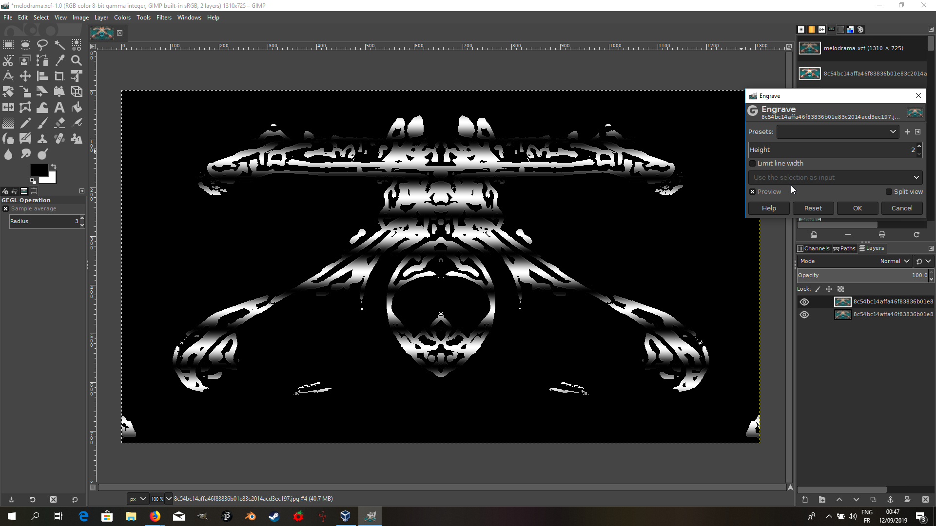 The first thing I did was apply an Engrave function with the lowest threshold, on a copy of the image: