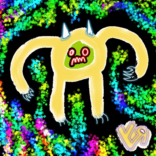 I like the horns, the hands, and the background on this one, but overall, it just didn’t work. Something about the shape of the monster and the rather bland face… Boring. (But I do like the background quite a bit.)