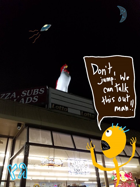 “Don’t Jump! (Desperate Chicken)” (sold 24 Feb. 2020)