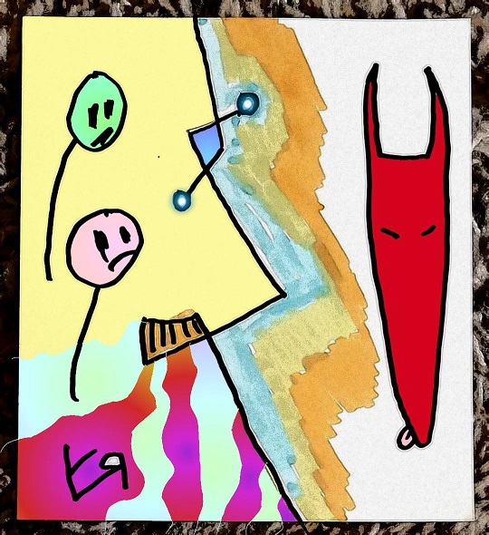 Let's establish a baseline: I like to make things, you know---drawings, photographs, drawings ON photographs, and other stuff, but the funny thing is, I’m not very GOOD at drawing. (Unschooled, sure…but also INTENTIONALLY wonky. Technical term, “wonky” means kind of distorted or amateurish or catawampus---mostly that last one.) I like to play. I try to draw QUICKLY, just slapping junk down, playing with colors, playing with contrasts, and because I’ve been drawing for so long (nearly fifty years) I have a handful of MOVEMENTS that I repeat---with variations---to create facial features or weird wobbly legs and arms… I like the way things look, usually, when I’m done…