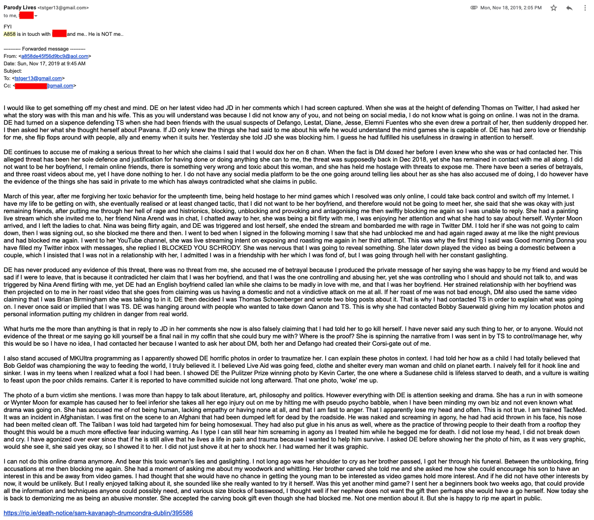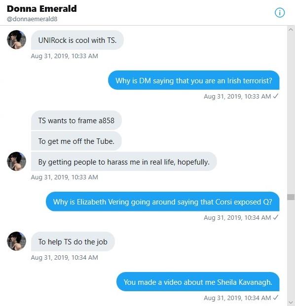Recently "Jack", the entertaining personality behind the A858 address, said that he is terminating this account and will no longer use it. He is being attacked by an Irish woman "Donna Emerald" who had a long-distance cyber relationship with this account. She has been laying into me all day on Twitter for doubting her version of events. I have the version of events from the other participant in them, which I will be sharing in this post. Readers can make up their own minds who is telling the truth. I have no dog in this fight but Jack has been nothing but gentlemanly towards me, while Donna has behaved like many of the #LARPsquad operatives that I seem to encounter on social media on an all-too-frequent basis.