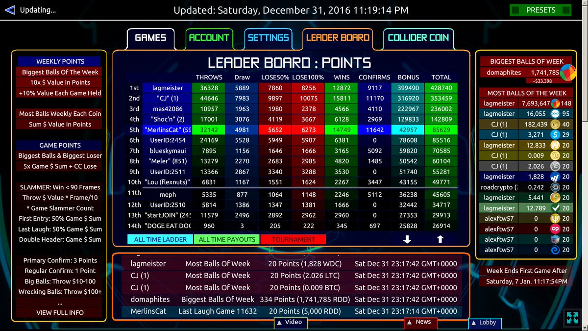 Last end of week results as we move into 2017 with more crypto colliding ball action