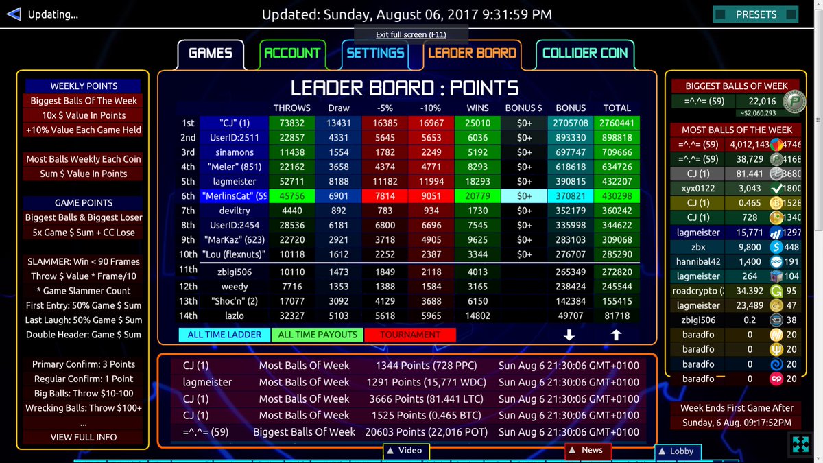 Biggest ball of the week 22,016.293 POTCOIN $2,060.293