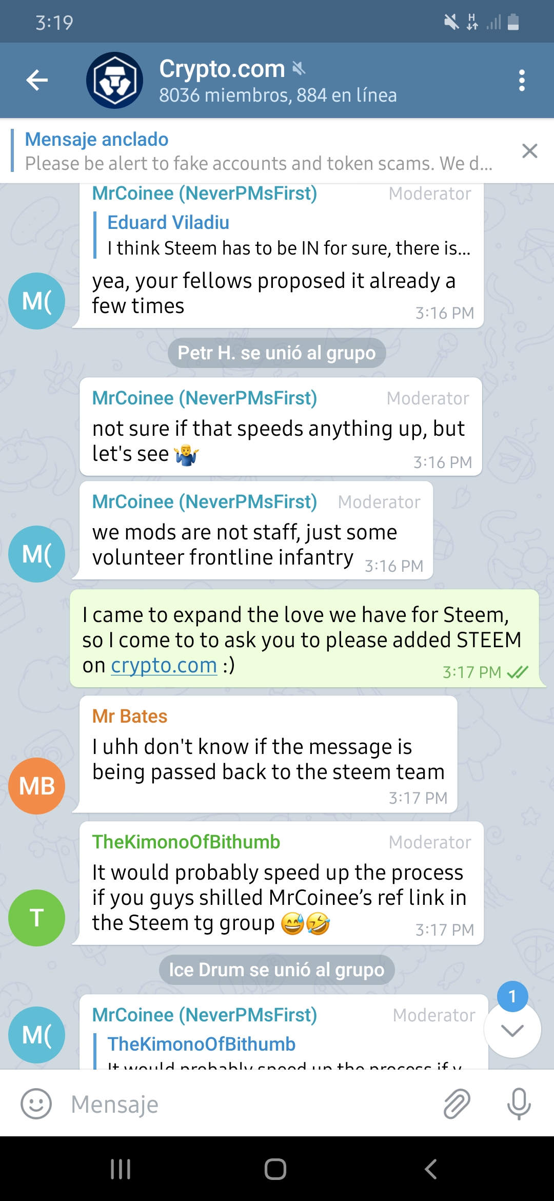 Ah yeah I saw that later on after my post! I'm not active on Telegram at all, but based on what I have seen in other groups, they must deal with some stuff in there... and I don't envy that ha.