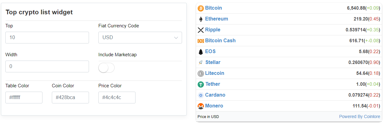 Cryptocurrency Widgets For Site/Blog