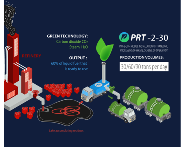 Most refineries are now surrounded by storages and lakes that contain useless black mass polluting the planet’s surface. Every year the amount of residues continues growing. The existing solutions on processing residues (thermal and chemical cracking) are too expensive and at the same time have a low effect. The technology of transonic combustion to eliminate super toxic residues developed by A.I. Papusha is applied in oil refining: due to minor improvements, the innovative unit can do something that was previously impossible – to extract such demanded products as gasoline, kerosene, diesel fuel, and synthetic oil, which is extremely valuable from practically unused oil production residues.
