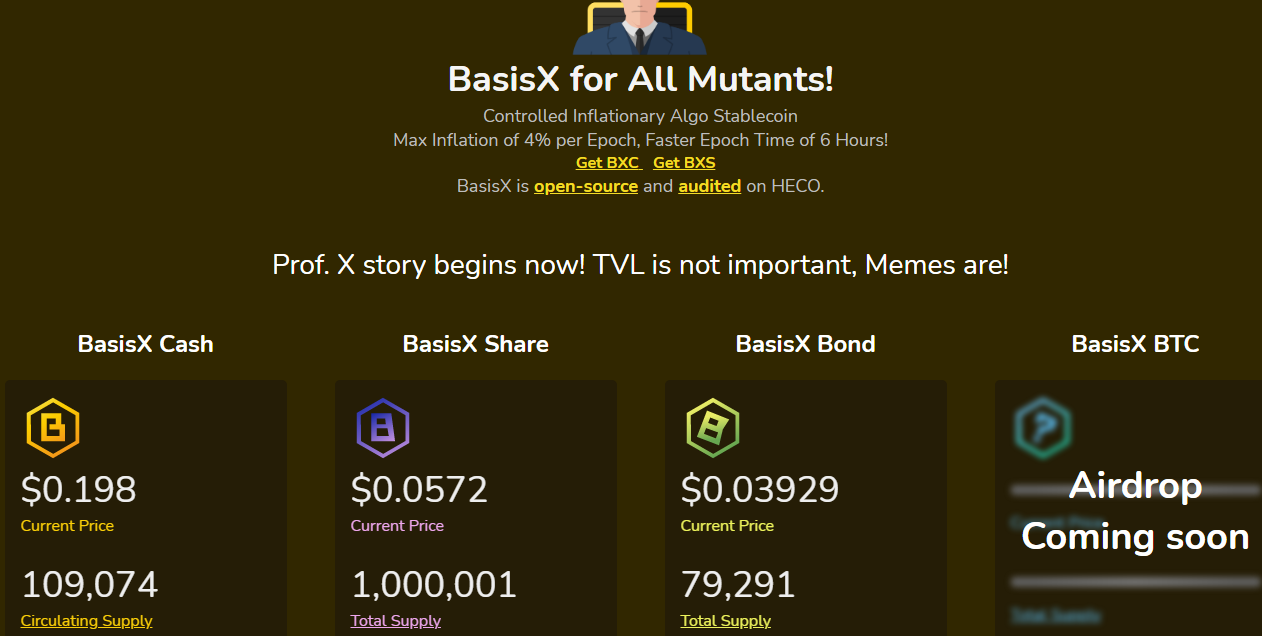 BasisX is an algorithmic stablecoin running on HECO