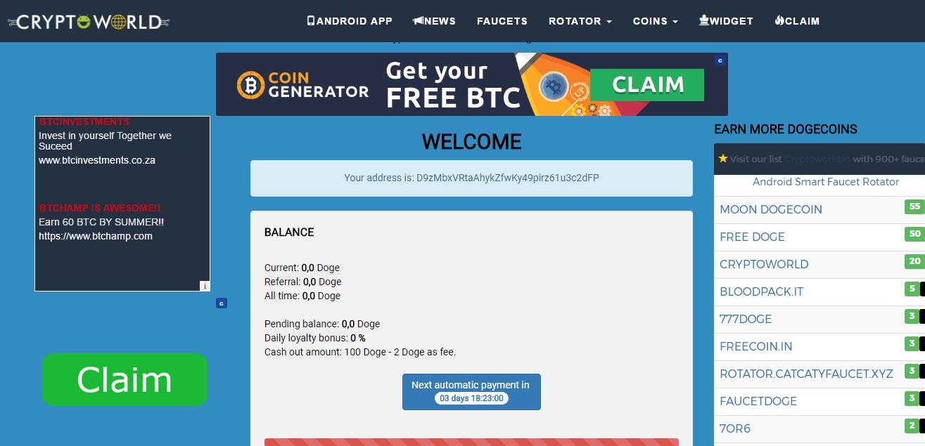 my best dogcoin faucetguibou (28)in #cryptocurrencies • 9 years ago most of the people doesn't know about that faucet click the link and claim http://cryptoworld.io/faucetDoge/?id=115808