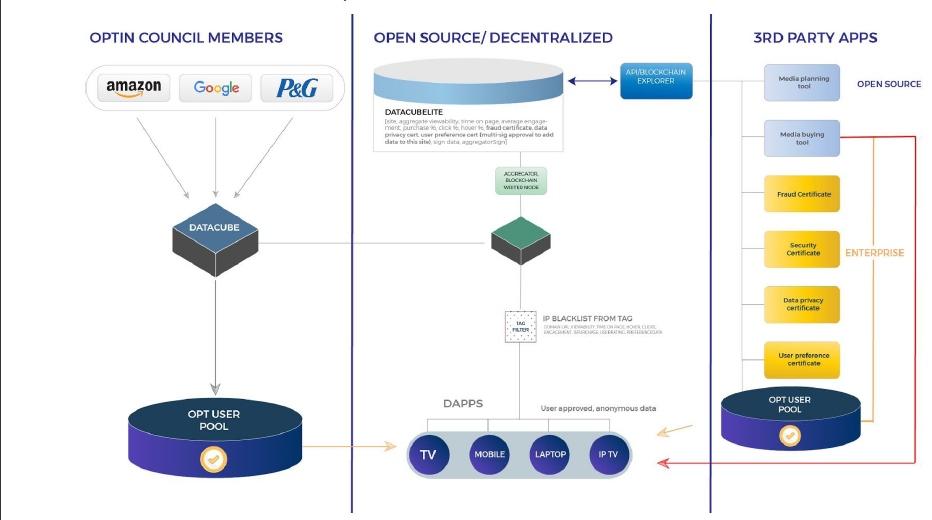 OPTin Coin meningkatkan pengiklanan dengan cara memperkuat hubungan antara para konsumen dan para pengiklan sama-sama mendapatkan keuntungan dari transaksi data yang sangat lancar dan juga dapat diverifikasi serta profil pengguna pada platform yang di jamin keamananya .