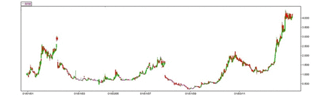 Was mich immer wieder irritiert an dieser Methode ist, wie ein Zusammenhang zwischen der Form einer simplen Diagrammlinie und einer Marktentwicklung gemacht werden kann. Auffällig dabei, man hört häufig Dinge wie